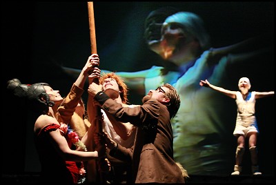De balans tussen pop, acteur en video is mooi en erg organisch. Wanneer de figuren meer naar de voorgrond van de scène bewegen, worden ze groter en dat geloof je als kijker meteen. Op gepaste momenten zoomt een camera in op een gezicht of een klein figuurtje, waardoor je in het beeld een prachtige gelaagdheid krijgt die de verschillende personages mooi tegen elkaar doet kleuren (zie foto). Het spel van Frank Dierens en Nele Goosens kon ons erg bekoren. De poppen (gespeeld door Gert Jochems, Tania Kloek en Filip Peeters) worden vaak magistraal gemanipuleerd.