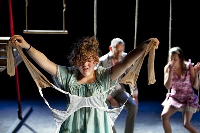 (c) Norbert Maes | Lara Taveirne (1983), die nu al een vijftal jaar met theater bezig is en zelf haar werk regisseert, heeft iets met herinneringen, met heel jonge mensen en met de vrouwelijk gevoelige kanten van de samenleving. In Tourne Sol!, haar tweede productie voor De Werf (Brugge) maakt zij daar een zeer compact geheel van dat je door zijn eenvoud en directheid niet onberoerd laat.