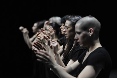 Daar komen ze de dansvloer op, acht vrouwen in het zwart. Lange haren, krullen, kaal geschoren, de meeste op blote voeten De een in een losse jurk, de ander met een jurk met diepe ruguitsnede, een avondjurk, een zuiderse weduwejurk, een werkjurk. Ze ademen in, uit, heel krachtig, en maken gevechtssportgebaren, slaan hun armen uit, hun vuisten gebald, verplaatsen hun voeten in strijdvaardige houding, allen op het ritme van felle ademhalingen, ieder in een eigen bewegingspatroon. Choreograaf Ugo Dehaes, op dit moment artist in residence bij kunstencentrum STUK (Leuven) verzamelde acht vrouwen om zich heen, en werkte een anderhalf jaar aan Women. Eerder werk (o.a. Forces, zie archief) bevatte een fijne speelsheid. Dat ludieke element zit ook in deze productie, maar is nu volledig ingebed in een fysieke krachttoer van de danseressen. De acht vrouwen kijken elkaar aan, nemen bewegingen van elkaar over, spiegelen zich aan elkaar, gaan een samenspel aan, tegen elkaar, met elkaar. Verbeten gezichten, fonkelende ogen, ieder straalt een zelfbesef uit, allen hunkerend, zelfs hongerig naar leven, beweging en een individuele eigenheid in de expressie. Alsof ze zeggen: Hier staan wij, vrouwen van boven de dertig, 'oude' danseressen van dertig, veertig en vijftig jaar, maar je moet niet denken dat we niets meer kunnen, je moet niet denken dat we alleen nog in staat zijn tot huppelende danspasjes, tot clichéstapjes zoals van vrouwen verwacht wordt. Wij kunnen veel meer! Typische al dan niet frivole, sensuele en dartele vrouwen-stijldansen worden van de dansvloer geveegd. Met subtiele humor die je laat glimlachen. Zonder muziek, alleen hun ademhaling, hun hijgen, hun blazen, hun zuchten, hun grommen, (af en toe met een gil), zorgen bij de danseressen voor de aanzet tot bewegingen; alleen hun krachtig in- en uitademen geeft de aanstoot tot fysieke vrijheid, hun fysieke trots. En hoe! Het is fascinerend hoe deze vrouwen bijna een uur lang in een samenspel van individuen, met ieder haar eigen kracht, het publiek blijven boeien met hun kunnen en kunde, zonder dat het dansspel wegglijdt in een verzameling van mooie plaatjes. Alle tierelantijntjes, alle versieringen en effecten zijn overboord gegooid. Ugo Dehaes probeert met deze groep vrouwen weer te keren tot de essentie van de dynamiek van de dans en de kracht van haar uitvoerders. In een minutieuze symbiose van ademhaling en timing in de bewegingen. En daarin slaagt hij schitterend met Luise Chardon, Marie De Corte, Ida De Vos, Miryam Garcia Mariblanca, Saykai Kaiwa, Kayoko Minami, Natascha Pire en Karin Vyncke. Info: www.kwaadbloed.com