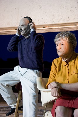 Theatermakershuis De Queeste heeft iets met water, sinds het nog geen jaar geleden onderdak heeft gevonden in De Silo aan het Albertkanaal in Hasselt. Twee locatieproducties staan opgesteld aan de rand van het water. Medea op een platform met uitzicht op het kanaal en de voorbijvarende boten. En dan is er nu Vroenhover Brug onder de brug over het Albertkanaal in -allicht- Vroenhoven. Een heel nieuwe brug met verrassende plekken als je onderin gaat. Over deze brug, en vooral over de oude opgeblazen brug hebben vier oude mannen en een vrouw het in hun verhalen over het Belgisch grensdorp bij Maastricht Voor mij met Maastrichtse roots natuurlijk heel herkenbaar concreet en vol aha-herinneringen, maar het is ook een universeel verhaal van een gemeenschap. En de brug van Vroenhoven is heel speciaal, want hier begon op 10 mei 1940 de oorlog voor België. De Queeste heeft al jaren lang interessante 'buurtpatrouilles' (vooral over Genkse sociale thema's) gemaakt, en is nu aan de slag met 'grenspatrouilles': wat scheidt en bindt inwoners van de Euregio? Op basis van interviews en research in samenwerking met de Universiteit Maastricht werd er een voorstelling gemaakt die de reportage en het docudrama overstijgt. Ook nu lukt dat weer bijzonder goed met acteur- en regiestudenten van de Toneelacademie Maastricht. (Naast het Grenspatrouille-traject en het eigen artistiek parcours wil de Queeste ook ruimte geven aan prille theatermakers in het kader van K A D E. Jonge makers werken er onder de vleugels van De Queeste aan hun project. Dat leverde dit seizoen al een verrassende Medea naar Jean Anouilh op locatie op.) We lopen van het restaurant La Pergola over de brug naar het brugplein. In de glazen balustrade is een Duitse tekst gegraveerd. Over naar huis gaan, over herinneringen, over schaduwen die verhalen fluisteren. En die verhalen krijgen we te horen als we beneden onder de brug op het overdekt terras en café in aanbouw zitten. Deze brug is meer dan een brug. De brug van Vroenhoven is ook een informatiecentrum, met terras, panorama-uitkijkposten, café, amfitheater, klimmuur, nu nog in aanbouw. Het is een groot complex rond de bunker die men heeft laten staan. Vanuit deze bunker had de brug bij de inval van de Duitsers op 10 mei 1940 moeten opgeblazen worden, maar de vijand trof de Belgische soldaten eerst, waardoor de tanks over de brug België konden binnenrollen. Het brugcomplex wil van deze Vroenhovense plek een symbolisch centrum voor de Tweede Wereldoorlog maken, zoals Ieper dat is voor de Eerste. Hier is het allemaal begonnen. We zitten op een geplaatste tribune op de werf. Vijf jongeren vertellen over de nieuwe brug, en over de oude. Die werd op 16 januari 2009 opgeblazen. Een zwart plastic wordt weggetrokken en we krijgen een schitterend uitzicht op het water, op de achterliggende groene heuvels, op de mooie wolken in het vale avondlicht. Personages schuifelen naar de terrasbalustrade, richten zich tot het publiek, schoorvoetend. Oude mensen zijn het, oud gemaakt door de latexmaskers, door hun kleding, hun haperende stemmen, hun gebrekkig gangetje. Eentje zit in een mobiele rolstoel, hij beweegt zich het snelst voort. De café-uitbaatster, haar zoon, de douanecommis, de gewone man vertellen hun verhaal, mijmerend, in de stiltes vullen ze elkaar aan. Ze worden soms onderbroken door een jong meisje, de stem van de architect, dat de technische toekomstplannen van de brug en zijn invloed op de omgeving schetst. De verhalen gaan over het graven van het kanaal in de jaren dertig, over de oorlog, over het feit dat de brug pas een zeventig jaar later dan voorzien wordt opgeblazen, over de smokkelaars in dit (bijna) drielandenpunt. Ze zingen het smokkellied, toeschouwers zingen mee. Gewoonweg ontroerend. Later gaat het over dat stuk Vroenhoven tussen de brug en de grens dat uitgroeit tot hét nacht-uitgaanscentrum van Maastricht. De horeca bloeit, maar zakt dan weer als een pudding in elkaar. Wat is er nu in deze landbouwgemeente nog te beleven, wat biedt de toekomst? De plannen voor de brug als infocentrum over oorlog en wereldvrede kunnen misschien soelaas bieden. Dat alles baadt in een sfeer van melancholie en nostalgie, zonder dat dat naar sentimenteel en klefferig gedoe af glijdt. De Queeste weet prachtig te doseren in spel, in anekdotes, enscenering. Het dorpsverhaal krijgt in al zijn geloofwaardige concreetheid iets universeels. Mede door de rake karakteriseringen van de personages die niet tot typetjes verworden. De Queeste maakt met deze productie eens te meer van immaterieel erfgoedmateriaal interessant en fascinerend theater. Info: www.dequeeste.be, Vroenhover Brug nog tot en met zondag 26 juni 2011. Medea staat nog o.a. op Theater Aan Zee (editie 2011)