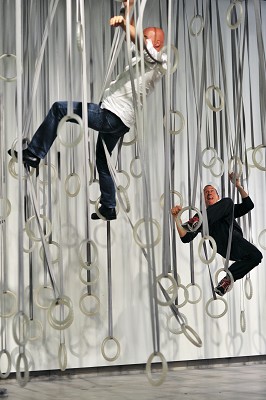 Een tunnel die je alleen kunt doorkomen door je met handen en voeten vast te klampen aan ringen die aan touwen hangen en als een aap van de ene naar de andere ring te slingeren. Er staan veel mensen aan te schuiven. Ik bedank er dan maar voor. De mensen die wel naar de overkant gesparteld zijn, zijn enthousiast: ‘Super!’ zeggen ze. Ik heb wel aan een gewoon touw geschommeld, ik heb mijn evenwicht proberen te behouden op een boomstam, ik ben door een smalle gang tussen twee geel-groenfluoriscerende muren geschoven (Green Light Corridor van Bruce Nauman, 1970). Ik heb met veel plezier naar performances van echte dansers gekeken. Zelf dansen zit er bij mij niet zo in, maar op de tentoonstelling Dans en Kunst sinds de jaren ’60 kunnen de bezoekers die dat willen, veel zelf doen. De bezoeker wordt danser. In deze tijd van uit hokjes breken, kunstdisciplines vermengen en schottenloos subsidiëren, is het eens goed achterom te kijken en te zien hoe de kunsten en met name de podiumkunsten zijn geëvolueerd. Dans en beweging spelen daarin een cruciale rol. Kijken naar dans is – hier in het westen – pas iets van de laatste 350 jaar. Daarvoor deed het publiek gewoon mee, op straten en pleinen, en tijdens galafeesten aan het hof, tot Lodewijk XIV (wegens jicht?) niet meer op de dansvloer kon stralen als zonnekoning en het dansen overliet aan professionelen. Tegen dit ballet met zijn strenge grammatica en academische regels kwam er rond 1900 reactie. De spitzen werden aan de wilgen gehangen, het korset en de tutu werden afgeworpen, de danseressen wilden vrij bewegen, op blote voeten, liefste in de vrije natuur, in wapperende gewaden of naakt. Isora Duncan en Loïe Fuller zijn de oermoeders van de moderne dans. In de eerste helft van de 20ste eeuw komt dat ‘vrij willen bewegen’ niet alleen in de dans voor, maar ook in andere kunstdisciplines. Vooral de schilderkunst vindt inspiratie in de nieuwe dans: denk bijvoorbeeld aan Henri Matisse met De Dans of aan de vele danstekeningen van Paul Klee. Maar ook in de felle kleurvlakken en dikke strepen op de doeken zit beweging. Toen was vooral de zgn. expressionistische dans ( de Austrucktanz) erg in zwang. Dans diende als uitbeelding van vooral emoties, van politieke en sociale thema’s, van kosmische mystiek. Na de oorlog zet dat vrije bewegen zich voort in de abstracte dans, ofwel postmodernistische dans. Dagelijkse bewegingen vormen vaak het uitgangspunt. Dans is dans is dans, en meer moet dat niet zijn. Het is vaak een onderzoek naar bewegingen, naar de positie van het lichaam in tijd en ruimte, naar de mogelijkheden van dat lichaam, al dan niet in confrontatie met andere lichamen. De jaren '60 zijn een belangrijke moment van de integratie van andere kunsten in de dans, en andersom. Daarvan geeft de tentoonstelling in Düsseldorf een mooi overzicht. Getoond worden sculpturen, schilderijen en installaties van artiesten, dansers en choreografen die elk op eigen wijze de bewegingen van de expobezoeker beïnvloeden: “Niet de voorstelling van de beweging, maar de beweging zelf is het thema van de tentoonstelling” schrijft curator Doris Krystof. In de jaren '60 werkten beeldende kunstenaars van de pop-art vaak mee aan dansvoorstellingen. De bekendste is Robert Rauschenberg. Ook componist John Cage bracht zijn ‘toevalsmuziek’ in voorstellingen. Het gebeurde dat een productie gemaakt werd in drie losse delen: een choreograaf improviseerde zijn deel, een beeldend kunstenaar zorgde voor het 'decor', een componist maakte de soundscape. De drie wisten niets van elkaar, en alle drie de delen kwamen pas samen op de première zelf. Ook de (dans)beweging golfde in andere kunstdisciplines. Kijk naar action painting van Jack Pollock. De jaren '60 zijn de jaren van de performances van Trisha Brown, Lucinda Childs, Merce Cunningham, het Judson Dance Theater, en zoveel anderen. Er wordt tegen de muren van wolkenkrabbers gedanst, op dakterrassen en ander locaties. Bruce Nauman maakt met zijn video's een soort dans, Dan Graham, Lygia Clark, Robert Morris en anderen maken grote installaties, waarbij de toeschouwer niet alleen hun ogen moeten gebruiken, maar hun hele lichaam. Niet alleen het lichaam van de danser is een choreografisch object, ook dat van de toeschouwer. De Homo Ludens (van John Huizinga, van 1934!) beweegt zich weer onder de hippie-mensen die in zen, primitieve culturen, performances en andere kunstfenomenen zoeken naar een bevrediging van het verlangen naar primaire levenservaringen. En die tendens zet zich in de loop der jaren verder in een meer maatschappelijke danskunst, naar experimenten en queestes naar de manipulatie van lichaam, tijd en ruimte, waarbij kunstdisciplines, en vooral video en film in de choreografie geïntegreerd worden. Dansartiesten bewegen zich op het vlak van beeldende kunst. Zo ontwikkelt William Forsythe installaties, zoals Act Of Matter, de tunnel met de ringen aan touwen. De Test Room van beeldend kunstenaar Mike Kelly is een grote ruimte met objecten, plastische sculpturen als speelgoed, met film en performers en met dansers verkleed als apen. Het is een zoektocht naar hoe nieuwsgierigheid de performer én toeschouwer kan manipuleren. In het 'autotheater' van de Oostenrijkse kunstenaar Franz West kun je met uitvergrote dagelijkse objecten zelf je theater maken. Op de tentoonstelling kun je ook een origineel archief bekijken. Meer dan 170 opnames van Merce Cunningham, Rosas, Jan Fabre, Meg Stuart, Sasha Walz en zoveel anderen kun je interactief openen. Zo krijg je - als je de tijd neemt – een mooi totaalbeeld van hoe in 50 jaar de schotten tussen dans en ander kunstdisciplines afbrokkelden. En als je nog tijd hebt, bekijk dan in het museum ook de vaste collectie van surrealisten en expressionisten uit het begin van de 20ste eeuw, met veel werk van Paul Klee. De niets vermoedende toeschouwer wordt opgeschrikt door een man, van wie je denkt dat het een suppoost is, die ineens dansante bewegingen maakt , en 'This
