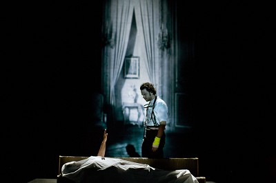 Het eerste deel van De man zonder eigenschappen raakte emotioneel niet, schreef ik in mijn bespreking (zie archief), maar zorgde wel voor puur intellectueel genot. Deel II, Het Mystieke huwelijk, beroert zowel de ratio als de gevoelens. En hoe! Het is ook weer een pareltje van een productie qua inhoud én vorm. Wat een taal, wat een beelden! In het eerste deel van de trilogie De man zonder Eigenschappen (een bewerking van de gelijknamige roman van Robert Musil) maken we kennis met de elite van Kakanië, de spotnaam voor het Oostenrijks-Hongaars keizer – en koninkrijk, die in 1913 in Wenen de zgn. Parallelactie voorbereidt ter viering van het zeventigjarige Keizerschap van Franz-Josef in 1918. Het personage Ulrich, wiskundige en de man zonder eigenschappen, is een van de vele personages. Er zijn verder o.a. de conservatieve graaf Leinsdorf die extreem-rechts wordt, de idealistische en spirituele salondame Diotima, de wat simpele generaal Stumm von Bordswehr, de opera- en vrouwenliefhebber graaf Tuzzi, de hysterische Clarisse en haar man, de mislukte kunstenaar Walter, enzovoorts. Een waaier van personages, opvattingen, rake uitspraken en typeringen ontvouwt zich voor de projecties van eerst Het LaatsteAvondmaal van Da Vinci (als beeld van 'saamhorigheid') en daarna de Intocht van Christus in Brussel van James Ensor (als beeld van de maskers die de elite opzet). Protagonist Ulrich staat nu veel meer in het middelpunt dan in het eerste deel. Hij wordt de man zonder eigenschappen genoemd door zijn omgeving. Hij weet niet goed te kiezen, hij durft geen standpunt in te nemen, laat staan te verdedigen. Hij draait mee met de wind en de woorden van de anderen. Het is echter iemand die twijfelt, die mogelijkheden wil overwegen, iemand die openstaat voor andere opinies en ze wikt en weegt, iemand die piekert over kansen voor iets anders. In Het mystieke huwelijk wordt het aantal personages verkleind tot zes, en van die zes vormen Ulrich (Tom Dewispelaere) en zijn zus Agathe (Liesa Van der Aa) het hoofdduo. Om hen twee gaat het. Hun vader is gestorven en zij ontmoeten elkaar in het ouderlijk huis op de vooravond van de begrafenis. Ze hebben elkaar al lang niet meer gezien, door de verblijven in internaten, de studies op andere plekken, de vestiging van Ulrich in Wenen. Er ontspint zich een herwonnen vertrouwen dat groeit naar liefde, en meer. Subtiel en suggestief komen ze dichter tot elkander. De ratio schuift, de emoties nemen toe. De 'man zonder eigenschappen' wordt meegezogen in de liefde tussen broer en zus. Overpeinzingen verworden tot korte zinnen, tot emotionele verzuchtingen, andere mogelijkheden worden nog overwogen, maar er resten er geen. Clarisse (Katelijne Damen) verdiept zich wel heel diep in de figuur van de seriemoordenaar Moosbrugger, Diotima (Gilda De Bal) raakt in de ban van en daarna verstrikt in de opkomende Freudiaanse psychoanalyse, generaal Stumm von Bordswehr (Marc Van Eeghem) wordt leper en rechtser (en spiegelt onze huidige Europese en Belgische situatie laconiek grappig), Graaf Leinsdorf (Vic De Wachter) conserveert de oude keizerlijke idealen. In het eerste deel waren het vooral de straffe en rake politieke en herkenbare uitspraken die opvielen door hun formuleringen en die een intellectueel genot teweegbrachten, nu zijn het naast de schitterende quotes over politiek en maatschappij met al zijn onhebbelijkheden, corrupties en stupiditeiten, ook de psychische en psychologische ontsponnen draden die zich als vanzelf tot een fijn rag weven. Ook nu wilde ik de ene zin na de andere onthouden, vanwege de stijl, de helderheid, de raakheid, maar dan volgt al weer een andere treffende formulering. (Ik moet nu echt het boek gaan lezen!) Wijze en schone woorden die op hun beurt versterkt worden door de zegging van de acteurs en actrices. Het mystieke huwelijk is een streling voor het oor, maar ook een visueel genot door het typische Guy Cassiers' spel met videobeelden en projecties. Ook nu glijden beelden zacht in elkaar over, van een stukje bibliotheek om de locatie aan te geven naar een close-up van Ulrich half in de schaduw. Van een spel met dubbele spiegelbeelden van Clarisse tot een als tegels in en uit elkaar schuivende beelden van de Intocht van Christus in Brussel van James Ensor. Een beeld dat we ook op het einde van deel I zagen: De personages laten hun masker niet vallen, integendeel, mensen worden maskers. De wereld aan de vooravond van de eerste wereldoorlog wordt grotesker en grotesker. Organisch gaan de beelden in elkaar over, zoals de muzikale dialogen tussen twee personages van in elkaar schuiven, zoals de microwereld van Ulrich en Agathe opgenomen wordt in de macrowereld van de vertegenwoordigers van het rijk en andersom. Alles weeft in elkaar, qua vorm en inhoud. Zo helder, zo mooi, zo roerend. Info: www.toneelhuis.be