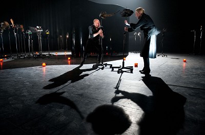 Stefan Perceval lijkt een vaste waarde in HETPALEIS te worden, met elk seizoen een nieuwe creatie. Hij maakte er al U bent mijn moeder (een afgezwakte versie van het zeer ingetogen autobiografische stuk van Joop Admiraal). Volgden nog Bolleke Sneeuw en het heel flauwe Eeuwige Sneeuw. De tocht van de olifant is zijn nieuwste productie bij HETPALEIS en is sterker dan de vorige producties dankzij het mooie acteerwerk van Sien Eggers en Marc Van Eeghem, het verhaal van José Saramago, de pianocomposities van Jef Neve, de uitvoering door Bram Weijters, de scenografie van Jan Strobbe. Deze mensen leveren allemaal mooi werk zoals we van hen konden verwachten, maar toch schort er iets: het geheel blijft niet boeien. Het stuk wil voor volwassenen en kinderen vanaf 10 jaar aan de hand van een concrete tocht van een olifant van Lissabon naar Wenen halverwege de 16de eeuw een verhaal over de wereld vertellen. Over machthebbers met hun absurde wensen en bevelen. Over de geschiedenis, over mensen, over macht en machtsmisbruik, over de relatie tussen mens en dier, over het samengaan van angst en godsdienst. Zoals dat ook redenen voor José Saramago zijn geweest om deze echt gebeurde historie na te vertellen. Er zitten heel veel subtiele verwijzingen in de tekst naar bestaande of historische toestanden, naar menselijke zwakheden, naar machtsmisbruik doorheen de eeuwen in geloof en politiek, enzovoorts. En ook naar de relatie tussen de personages op de scène. Het zijn de koning en de koningin die de begeleider en oppasser Subrho spelen, maar die ook nog onderling hun relatie in vraag stellen. Kortom: er zitten heel wat lagen in dit stuk. Misschien wat te veel. De tekst is heel belangrijk, en vraagt veel concentratie om te volgen en de subtiliteiten te onderkennen. Sien Eggers en Marc Van Eeghem zeggen hun teksten ingetogen, op een relativerende en wat lichte toon, maar dat is niet voldoende om constant de aandacht erbij te kunnen houden. Het spel an sich is statisch en abstract. De olifant is een grote gitzwart gepolijste golvende blok waarop de pianist troont, en de andere personages zijn aangerolde staanders met verschillend gemodelleerde hoofddeksels. Allemaal mooi om te zien, en de muziek is heerlijk melodieus en bijwijlen romantisch. Het statische spel geeft rust, als ook de pianostukken tussen de verhaalmonologen en dialogen in. Maar het wordt een rust die - bij mij toch - een ongedurigheid opwekte. Sacraal en sereen is deze tocht van de olifant, misschien wel een beetje te esthetisch sereen.