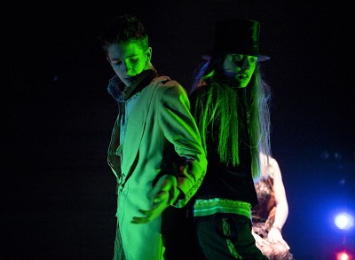 Telkens word ik verrast door de krachtige uitstraling die uitgaat van de acteurs en actrices van Theater Stap. De spelers met het syndroom van Down trekken direct de aandacht, en je blijft op hun spel, hun bewegingen gefocust. Pure magie, vermoed ik. Dat ervoer ik weer in de sterke beginscène van Alice. De scène ligt vol papierslierten met het effect van hooi, het publiek zit aan drie kanten op een allegaartje van losse stoelen, in drie hoeken staan planken, in de andere hoek zitten vier meisjes in het donker, klaar om te zingen, en voor hen een groot bed. Drie meisjes liggen erin, alle drie hetzelfde gekleed, een voor een ontwaken ze, heel traag, een na een begeven ze zich naar een kastje met glazen, vullen de glazen met melk, dansen ermee rond, zetten het neer op een nachtkastje. De laatste van de drie heeft nog het meest moeite met opstaan. Dan zitten ze op bed, twee eten een groot stuk chocolade, de derde roert cacaopoeder in de glazen, drinkt ze alle drie leeg, de twee anderen laten de chocolade vallen. Ze staren voor zich uit. Hier gebeurt eigenlijk iets heel banaals, maar door de kracht van het rituele trage spel van de drie actrices van Stap, en onder de klanken van de stuwende soundscape, de ijle zangstemmen en de halfduistere belichting, blijft deze scène fascineren. “Ik verveel me”, zegt de een na de ander, “ik verveel me dood”. De drie-eenheid Alice wil wel taart eten voor de verjaardag, maar wil tegelijkertijd niet volwassen, groter en wijs worden, wil gewoon niet ouder worden (en dit gegeven krijgt natuurlijk nog meer impact doordat je op de spelers met het syndroom van Down zo moeilijk een leeftijd kunt plakken. Het lijkt wel alsof deze mensen niet ouder worden). De duistere scène komt plots tot leven, de drie Alices belanden in een andere wereld. Met spetterend vuur verschijnen achter de houten pilaren de figuren uit het wonderland van Alice: de hoedenmaker, de koningin, de tweeling, het konijn. Zij worden vertolkt door de jonge Kaaimannen/vrouwen. Zij zijn nu de niet-normalen, de vreemden die de drie meisjes verleiden, lokken, misleiden met beesteke beesteke, kom. Zij zijn ook de drinkebroers, de klaplopers, de schunnigen, de brutalen, de jaloersen. En de drie Alices geraken niet uit deze – voor hen tegenovergestelde - wereld, waarin ze ingezogen zijn. Ze kunnen niet ontsnappen aan de kolkende emoties, de ontembare jeugdigheid van de wonderlandfiguren. De woorden zijn niet altijd verstaanbaar door de uitgeschreeuwde emoties, maar vaak doet dat er ook niet toe. De werelden zijn haarscherp getekend. De oplaaiende gevoelens spreken voor zich. Regisseur Bart Van Gysegem heeft met deze jonge mensen een aantrekkelijk heftige enscenering gemaakt van de wereld in het konijnenhol, met de soundscape, de belichting, de repetitieve sirenenzangen, de contrasten tussen de Stap-mensen en de Kaaimannen/vrouwen. Dit is de tweede voorstelling die ik zie (Poppemie heb ik gemist) van de samenwerking tussen Theater Stap en Kaaiman. Na Geen wonder dat ik ween (zie archief) is dit ook een rake productie in zijn beelden, zijn tableaux vivants, zijn fysieke taal. Het is een Turnhoutse samenwerking onder impuls van De Warande die jonge theatermakers kan stimuleren tot artistieke hoogstandjes, zoals bewezen wordt met deze Alice. Info: www.theaterstap.be of www.warande.be