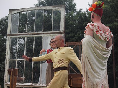 Wie Vlaams theater in de openlucht zegt, zegt Compagnie Marius. Het is de naam van de eerste openluchtvoorstelling die Waas Gramser en Kris Van Trier toen nog bij het gezelschap De Onderneming maakte. In 2005 splitste dat collectief zich in Lazarus en Marius. Waas en Kris kozen bewust voor theater onder de blote hemel, en noemden zich dus Compagnie Marius. Er volgden vele voorstellingen in regen en wind, onder zonneschijn en drukkende hitte, in het Nederlands en in het Frans. Marius was het begin van een Pagnol-cyclus. Later volgde nog Nagras (2000), Fanny & César (2001) en Manon & Jean (2006) Indrukwekkend waren voor mij die Manon en Jean van Florette, vier-en-een-half uur boeiend theater in openlucht, met lekker konijn en olijven als middagmaal en met een pastis als afsluiter. (zie archief 2008). Een heerlijk plattelandsverhaal, vol intriges, gekonkel, en intermenselijke (wan)verhoudingen, met op het einde – zoals het hoort in een goed episch verhaal - een ontknoping en een verklaring voor al de gedragingen. Deze cyclus wordt gezien als de Provençaalse variant van Misdaad en Straf en werd wereldberoemd in de cultfilm Manon des Sources uit 1952 en in de roman die filmmaker Marcel Pagnol later schreef. De drie tragedies van Pagnol worden nu, naar Grieks voorbeeld, afgesloten met een komedie, De Schpountz (uit 1936, en verfilmd in 1938 met een jonge Fernandel). De humor van Pagnol herkennen we in de schildering van de plattelandspersonages en in de dolle situaties, maar in deze komedie zijn de personages meer typetjes, en we missen een onderliggende broeierige Zuid-Franse dorpstragiek. Het blijft in deze komedie allemaal wat oppervlakkiger en lacheriger. De pleegzoon Irénée van een kruidenier in een Frans dorpje wil acteur worden, wil wereldberoemd worden op de filmset. Toevallig strijkt er een filmploeg in het dorpje en zij hebben het over een schpountz (spreek uit: sjpoents). Dat is het woord waarmee ze iemand aanduiden die per se wil acteren, daarover pocht en daarin blijft geloven. Een dikke nek rond een zeepbel. Irénée komt de filmploeg tegen en die besluit hem een poets te bakken. Een poets die nog in Parijs wordt voortgezet, en een positief staartje krijgt. Waas Gramser en Kris van Trier laten zich bijstaan door de spelers Koen Van Impe en Frank Dierens, twee oude rotten in het openluchtheatervak en nu ook door Maaike Neuville die met haar nonchalant gespeelde flegmatiek perfect past bij dit groepje. De vijf toneelspelers spelen een dikke twintig rollen, er wordt dus nog al wat verkleed. Dat gebeurt meestal uit het zicht van de tribune, maar ook zichtbaar als het allemaal snel moet gaan. Want vaart zit er wel in (alhoewel op de première op Theater aan Zee de minder goede tekstvastheid de boel afremde. Maar, Marius kennende, zal dat wel goed komen). Het stuk moet het vooral hebben van de taalgrappen en woordspelingen (Kris Van Trier heeft er samen met Waas Gramser zijn werk aan gehad voor de vertaling en bewerking). Grollen en oneliners vliegen de tribune in. De situaties ontlokken ook glimlachen en lachsalvo's. Het is allemaal lekker voorspelbaar en oh zo vederlicht. En de compagnie weet dat te brengen met spelplezier. Aangenaam om eens te zien. Maar ik mis toch de diepgang van de andere Pagnol-verhalen. De Schpountz is een – goed gebracht - luchtig tussendoortje. Info: www.marius.be