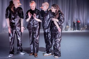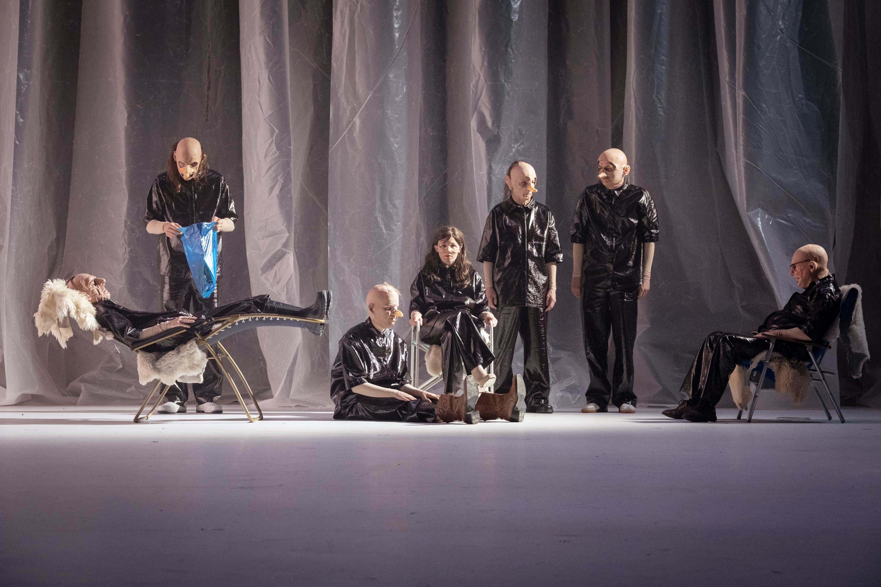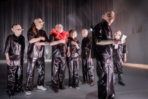 Toen ik de eerste foto’s van de versie van Olympique Dramatique /Toneelhuis te zien kreeg hield ik mijn hart vast. Acteurs/-trices gehuld in een theaterkostuum van zwarte plasticfolie, en met een soort rubbermasker op? Als dat maar goed komt… En kijk, alles kwam goed (en zelfs nòg beter). Want na één uur en driekwartier stapte ik het Bourla-theater weer uit, ongelukkig omdat Dokter Stockmann weer eens het onderspit had moeten delven tegen de ‘gevestigde macht’. Maar terzelfder tijd heel gelukkig omdat ik naar een superieure voorstelling had gekeken met superieure vertolkingen, en samen met een enthousiast publiek lang had kunnen applaudisseren. Dolblij was ik, dat ik me om niets zorgen had gemaakt over die plasticfolie. Waarvoor de kostuumontwerpster Inge Büscher alle lof verdient. De zwarte plasticfolie belemmerde de normale bewegingsvrijheid, en zorgde er tevens voor dat de acteurs niet meer herkenbaar waren, en er alleen maar ontmenselijkte figuren of ‘wezens’ op de scène stonden. Een nieuw soort Verfremdungseffekt ? Op het hoogtepunt van de herrie tijdens de ‘volksvergadering’ ging het ‘wezen’ van Dr. Stockmann zelfs helemaal uit de bol, en ontaarde zijn helder betoog in een heftig gekrijs. Het leek wel alsof hij, samen met de hele cast, gedrogeerd of vergiftigd was. Gedrogeerd of vergiftigd? Met een paar klikken van de (zwarte) muis op mijn (zwarte) toetsenbord leer ik, dat onze planeet in sneltempo verzadigd wordt met zeeën van grote en kleine plastic flessen en verpakkingen, maar ook met voor het menselijke oog nauwelijks zichtbare micro-plastics (tot 5 mm.) en zelfs met minuscule voor het blote oog totaal onzichtbare nano-plastics, die we samen met de lucht inademen en samen met onze voeding mee naar binnen werken. Tot in de verste uithoeken van de menselijke hersenen zijn er blijkbaar nano-plastics gevonden.