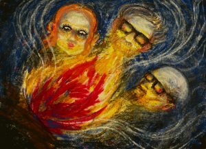 Ondanks een groot onweer met veel gedonder en bliksemschichten, maar gelukkig ook met veel wind waardoor grote voiles de zaal worden ingeblazen, waarbij het podium en de toeschouwersruimte in het halfduister als het ware samen worden ingepakt tot één grote tent, wordt er een sfeer van samenhorigheid en gezelligheid geschapen, een kampsfeer dus, die nog versterkt wordt door het creëren van een soort (electrisch) kampvuur met een hoop samengeraapte kleine en veelkleurige lichtbronnen. Terwijl vanaf het podium een katrol met kleine lichtjes wordt afgerold en als een ellenlange slinger wordt doorgegeven tot in de uiterste hoeken van de zaal. En er samen in een donkere ruimte, met enkel maar het licht van het kampvuur en van de stemmige kleine lichtjes, een kamplied wordt gezongen. Mijn jongste kleinzoon (12 jaar), die bij het onweer zijn ogen had dichtgeknepen en zijn oren toegestopt (hij verdraagt geen stroboscopisch licht, bliksemschichten, of te hevig lawaai) kwam weer tot leven, en zong enthousiast mee in deze Stille Nacht.