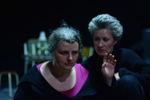 Directrice en artistieke leidster Judith Vindevogel, opteerde voor een project dat totaal afweek van de oorspronkelijke bedoeling The Medium als kameropera uit te voeren. ‘We kozen voor het avontuur’, kan men in de programmafolder lezen. Dat betekent om te beginnen een fiks inkorten. De voorstelling is een eenakter van drie kwartier geworden en van de oorspronkelijke zes uitvoerders van Menotti’s libretto en compositie, zijn er nu twee daadwerkelijk op de scène te zien: de mezzosopraan Eurudike De Beul en de actrice Simone Milsdochter. Een drastische besparing en tegelijk een kans voor labo-werk, lijkt een redelijke verklaring. Een proefproject met een ruime betekenis. Walpurgis onderzoekt hoe het gezongen en het gesproken woord, hoe zang en tekst in een zeer strikt uitgemeten keurslijf kunnen samengaan en tot een artistiek verantwoord resultaat leiden. Meteen een uittesten hoeveel experiment een publiek kan verdragen.